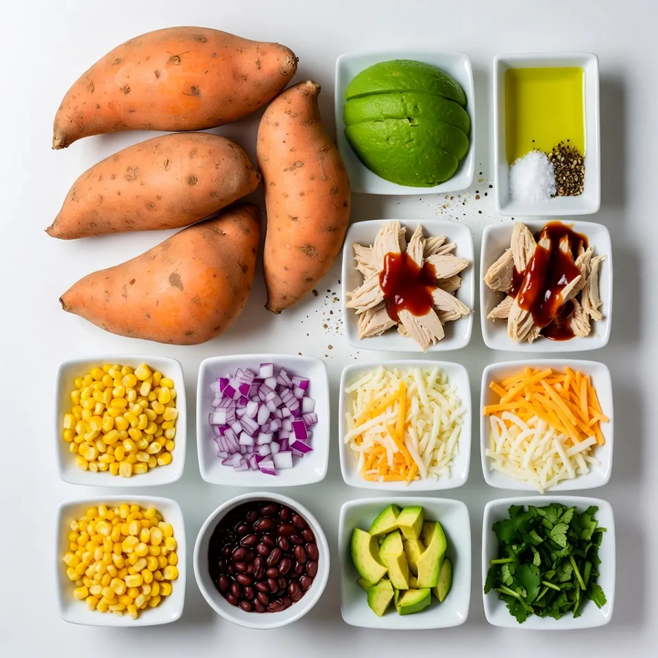To make BBQ chicken stuffed sweet potatoes, you will need: