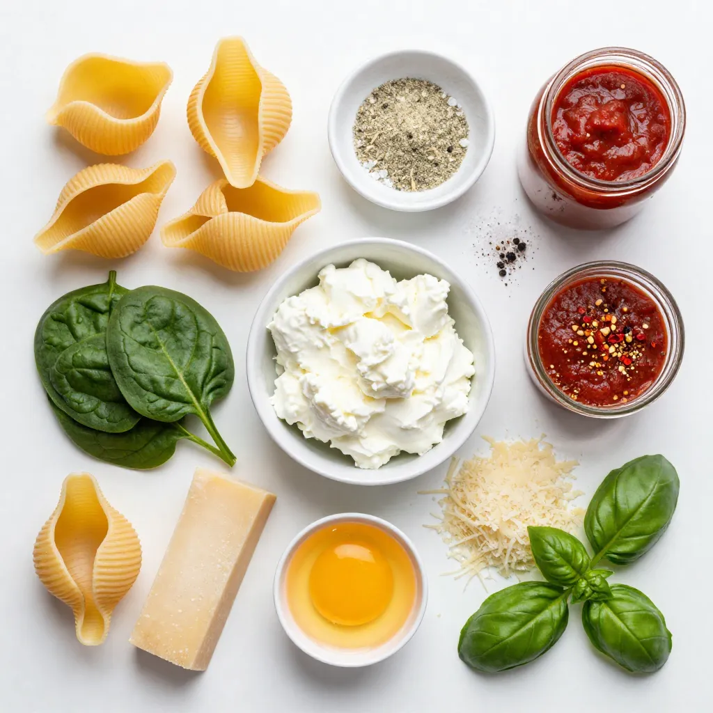 - 12 large pasta shells - 2 cups fresh spinach, finely chopped - 1 cup creamy ricotta cheese - 1 cup shredded mozzarella cheese, divided - 1/2 cup grated Parmesan cheese - 1 large egg, beaten - 1 teaspoon garlic powder - 1/2 teaspoon red pepper flakes (optional) - 2 cups rich marinara sauce - Salt and pepper to taste - Fresh basil leaves, for garnish For creamy ricotta cheese, I recommend Galbani or BelGioioso. They offer rich flavors that enhance the dish. When it comes to mozzarella, look for brands like Sargento or Polly-O for a great melt. For marinara sauce, Rao's Homemade is a favorite for its fresh taste. It makes the sauce really pop in this recipe. If you have a dairy allergy, try using dairy-free cream cheese in place of ricotta. For the mozzarella, a plant-based alternative works well too. If you're gluten-free, you can find gluten-free pasta shells made from brown rice or quinoa. These options keep the dish tasty while meeting dietary needs. {{ingredient_image_2}} First, preheat your oven to 375°F (190°C). This helps the shells cook well. Next, bring a large pot of salted water to a boil. Add 12 large pasta shells to the pot. Cook them for about 9 to 11 minutes, or until they are al dente. Drain the shells and let them cool for a bit. It’s easier to handle when they are not too hot. In a large mixing bowl, combine 2 cups of finely chopped fresh spinach and 1 cup of creamy ricotta cheese. Add half of the shredded mozzarella cheese, which is about 1/2 cup. Then, mix in 1/2 cup of grated Parmesan cheese. Crack in 1 large beaten egg, and sprinkle in 1 teaspoon of garlic powder. If you like some heat, add 1/2 teaspoon of red pepper flakes. Season with salt and pepper to taste. Stir until everything is creamy and well mixed. Now it’s time to stuff the shells. Use a teaspoon or a pastry bag to fill each pasta shell with the cheese and spinach mix. Arrange the stuffed shells in a greased 9x13 inch baking dish. Pour 2 cups of marinara sauce evenly over the shells. Make sure each shell gets some sauce. Next, sprinkle the remaining shredded mozzarella cheese on top. Cover the dish with aluminum foil and bake for 25 minutes. After that, remove the foil and bake for another 10 to 15 minutes. Look for bubbly and melted cheese that is lightly golden. Let it cool for 5 minutes before you serve. Enjoy your delicious Cheesy Spinach Stuffed Shells! To stuff your shells well, use a pastry bag or a spoon. A pastry bag gives you more control. Fill each shell with a generous amount of the spinach and cheese mix. Make sure the shells are not too hot; this helps avoid burns. For the best cheese melt, use fresh mozzarella instead of pre-shredded. Fresh cheese melts better and gives a creamy texture. Bake your dish covered for the first part. This keeps moisture in. Then, uncover it for the last few minutes. This creates a bubbly, golden crust. One mistake is overcooking the pasta shells. They should be al dente, or they will break. Another is not seasoning the filling. Taste it before stuffing. Lastly, don’t skimp on the marinara sauce. A good sauce makes all the difference in flavor. Pro Tips Use fresh spinach: Fresh spinach offers a vibrant flavor and texture compared to frozen. If using frozen, be sure to squeeze out excess moisture. Customize the cheese: Feel free to mix in other cheeses like feta or goat cheese for an extra flavor dimension. Make-ahead option: Assemble the stuffed shells ahead of time and refrigerate. Just add a few extra minutes to the baking time if baking from cold. Experiment with sauces: While marinara is classic, try using Alfredo or a pesto sauce for a unique twist on flavor. {{image_4}} You can add chicken or sausage for more flavor and protein. Start by cooking the protein separately. For chicken, use cooked, shredded pieces. For sausage, cook and crumble it. Mix the cooked meat into the cheese and spinach filling. This makes the dish heartier and more filling. If you want to change up the flavors, try adding other veggies. Chopped mushrooms, bell peppers, or zucchini work well. Sauté these vegetables first to soften them. Then mix them into the cheese filling. This keeps the dish fresh and colorful. For a dairy-free version, you can swap the cheese for plant-based options. Use vegan ricotta or cashew cheese instead of regular ricotta. Nutritional yeast can add a cheesy taste without dairy. Combine these with spinach and spices. This way, everyone can enjoy cheesy spinach stuffed shells! To keep your cheesy spinach stuffed shells fresh, store them in an airtight container. Make sure to let the dish cool first. Store in the fridge for up to three days. If you have extra marinara sauce, keep it separate. This helps prevent the shells from getting too soggy. Reheat the stuffed shells in the oven for the best results. Preheat your oven to 350°F (175°C). Place the shells in an oven-safe dish and cover with foil. Bake for about 20 minutes or until heated through. You can add a little extra cheese on top if you want more melty goodness. If you want to freeze them, do it before baking. Stuff the shells and place them in a freezer-safe container. You can freeze them for up to three months. When you’re ready to eat, let them thaw in the fridge overnight. Then, bake as usual, adding a few extra minutes to the cooking time. You can prepare Cheesy Spinach Stuffed Shells in advance. First, follow all the steps to stuff the shells and layer them in the baking dish. After adding the marinara sauce and cheese, cover the dish with plastic wrap. Refrigerate it for up to 24 hours. Before baking, remove the wrap and cover with foil. Bake as usual, adding a few extra minutes if cold. Yes, you can use frozen spinach. Just make sure to thaw it first. Squeeze out any extra water to avoid a soggy filling. Frozen spinach is a great time-saver and still gives you that tasty flavor. Use about 1 cup of thawed spinach in your filling mix. These stuffed shells pair well with a fresh side s
