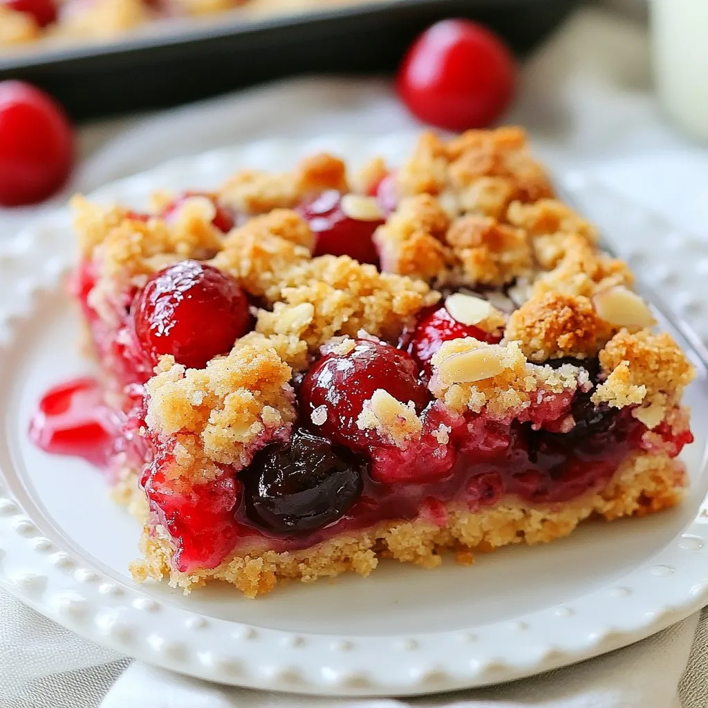 - Visually Appealing: The vibrant color of the cherries and the golden crumble topping make these bars a feast for the eyes.