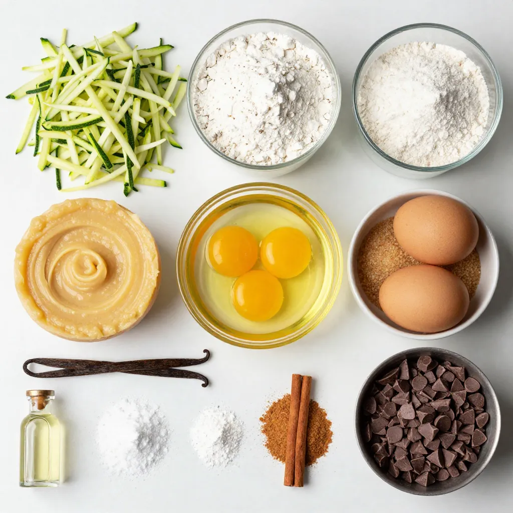 To make delicious chocolate chip zucchini muffins, gather these key ingredients: