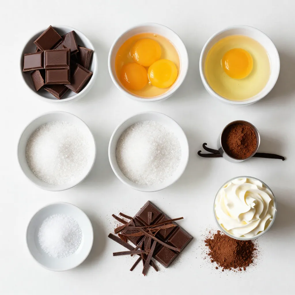 To make Chocolate Espresso Mousse, start with dark chocolate. I love using chocolate with 70% cocoa for a rich taste. Next, you need three large eggs. You’ll separate the yolks and whites. The egg yolks add creaminess, while the whites make the mousse light. Granulated sugar sweetens the mix, while instant espresso powder gives a nice coffee kick. A dash of vanilla extract enhances all the flavors. Finally, chilled heavy cream creates that smooth, airy texture we all crave.