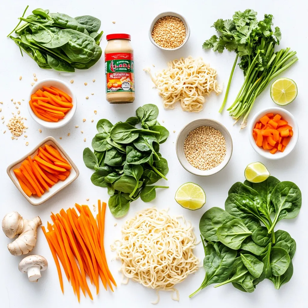 Ramen noodles are the heart of your dish. They soak up the broth well. Baby spinach adds color and nutrition. Carrots and bell peppers provide crunch and sweetness. Mushrooms add umami, making every bite satisfying.