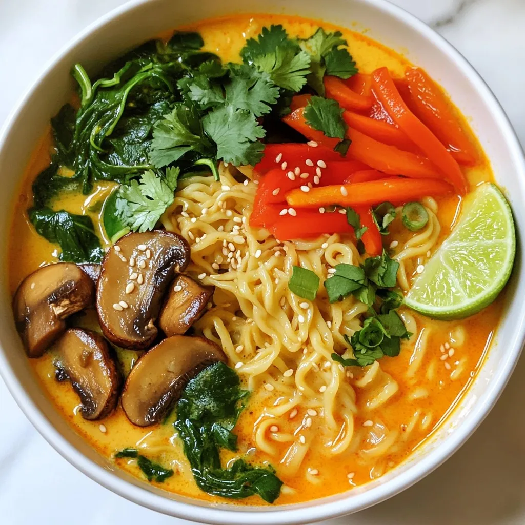 These main ingredients form the base of your coconut curry ramen. The vegetable broth gives depth, while the coconut milk adds creaminess. Red curry paste brings heat and flavor. Fresh ginger and garlic add a fragrant punch that elevates the dish.