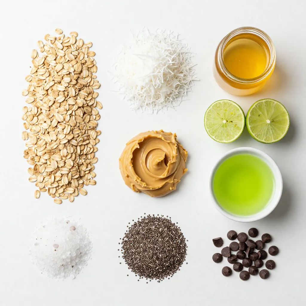 To make Coconut Lime Energy Bites, you need simple and fresh ingredients. Rolled oats form the base. They give fiber and texture. Unsweetened shredded coconut adds a tropical feel. Almond butter offers healthy fats and creaminess. You can swap this for any nut butter you love.