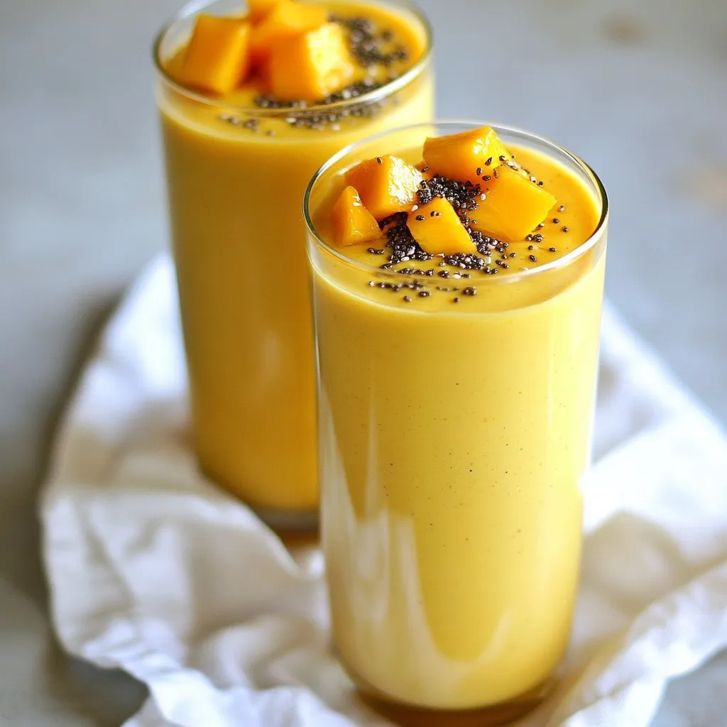 Pour your smoothie into tall glasses for a nice look. For garnish, add a slice of fresh mango on the rim. You can also sprinkle a few chia seeds on top. A fresh mint leaf adds a pop of color and scent. Serve right after blending to keep it cold and fresh.