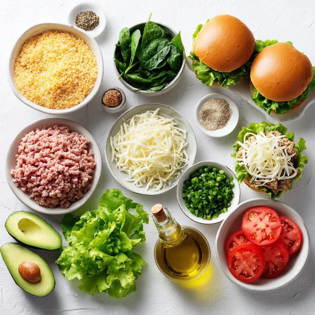 To make these burgers, I gather all the key ingredients first. The ground chicken acts as the base, giving us juicy patties. Fresh spinach adds a nice touch of color and nutrition. I love using white cheddar cheese because it melts so well and adds great flavor. Panko breadcrumbs give the burgers a delightful crunch.