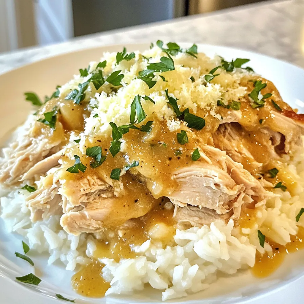 A savory and tender chicken dish cooked in a rich garlic and Parmesan sauce, perfect for a comforting meal.