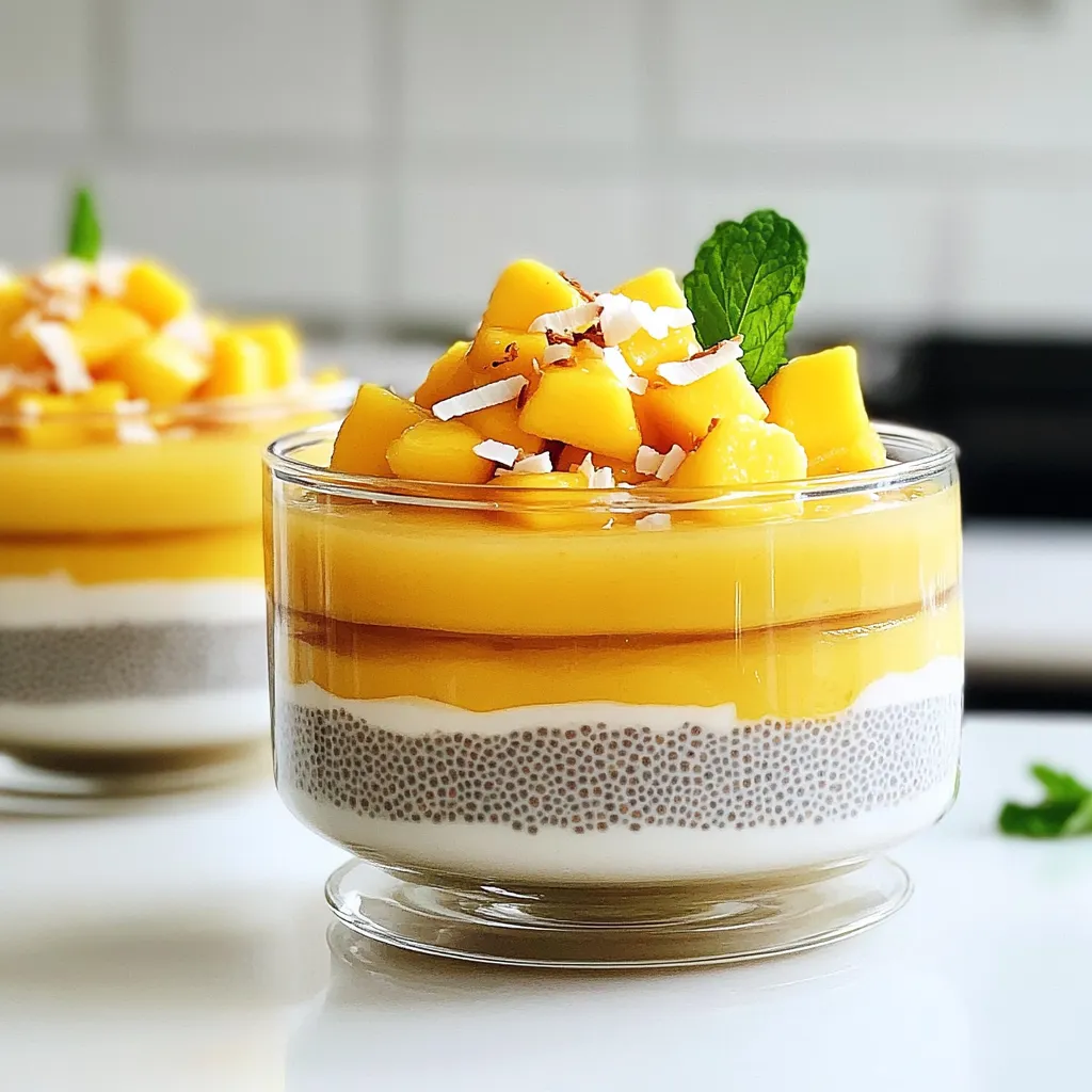 You have fun options for serving mango coconut chia pudding. Try using clear glass cups for a beautiful display. Layer the pudding with diced mango for a colorful look. You can also serve it in mason jars for a cute picnic treat. Another idea is to serve it with a scoop of yogurt on top. This adds creaminess and a tangy flavor that pairs well.