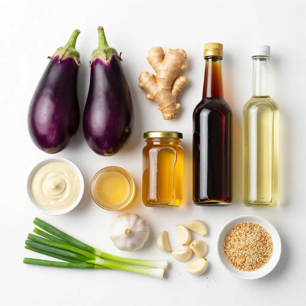 To make Miso Ginger Glazed Eggplant, you need: - 2 medium eggplants, sliced into 1-inch thick rounds - 3 tablespoons white or yellow miso paste - 2 tablespoons fresh ginger, grated - 2 tablespoons honey or maple syrup - 2 tablespoons soy sauce (or tamari for a gluten-free option) - 1 tablespoon sesame oil - 1 tablespoon rice vinegar - 2 cloves garlic, minced - 1 tablespoon sesame seeds (for garnishing) - Chopped green onions (for garnishing) Choose eggplants that are firm and smooth. Look for shiny skin without any blemishes or wrinkles. A good eggplant feels heavy for its size. Avoid any that seem soft or have dark spots. Smaller eggplants are often sweeter and less bitter. Always pick ones with bright green caps, which means they are fresh. If you can't find miso paste, try tahini or almond butter for creaminess. For soy sauce, coconut aminos work well as a gluten-free option. You can also mix in a bit of vinegar for tang. Adjust the flavors to your liking, but keep it simple. Cooking should be fun, and you can always experiment! {{ingredient_image_2}} First, preheat your oven to 400°F (200°C). This temperature helps the eggplant cook evenly. While your oven heats, get a baking sheet and line it with parchment paper. This step prevents the eggplant from sticking. Next, take your eggplants and slice them into 1-inch thick rounds. Now, let’s make the glaze. In a medium bowl, combine miso paste, grated ginger, honey or maple syrup, soy sauce, sesame oil, rice vinegar, and minced garlic. Whisk these together until smooth. This glaze adds great flavor to the eggplant. Using a basting brush, apply the glaze to both sides of each eggplant slice. Make sure they are well-coated. This step gives each piece a rich taste. Place the baking sheet with the coated eggplant in the preheated oven. Bake it for about 25-30 minutes. To ensure even cooking, flip the slices halfway through. This helps both sides get that nice caramelized look. For even more flavor, baste the eggplant with any leftover glaze during this time. Caramelization brings out the sweetness in the eggplant. To get it just right, watch the time carefully. The eggplant should be tender and have a golden-brown color. If you notice that it isn’t caramelizing as you want, leave it in a bit longer. Once ready, take the eggplant out of the oven and let it cool for a few minutes. This cooling helps set the glaze. When serving, sprinkle sesame seeds and chopped green onions on top. These add a lovely crunch and color. Enjoy your delicious dish! To boost the flavor of your miso ginger glazed eggplant, add a splash of citrus. Lemon or lime juice brightens the dish. You can also mix in some chili paste for a spicy kick. This extra layer makes each bite more exciting. Consider using toasted sesame oil instead of regular sesame oil. It adds a nutty richness that stands out. One common mistake is not salting the eggplant before cooking. Salting draws out moisture and bitterness. It helps the eggplant fry better and taste sweeter. Another mistake is overcrowding the baking sheet. Give each slice space to breathe. This helps them caramelize and brown evenly. Lastly, avoid skipping the basting step. It keeps the glaze moist and flavorful. For a beautiful presentation, use a large, colorful platter. Arrange the eggplant in a fan shape or stack vertically. Top with sesame seeds for crunch and chopped green onions for color. A drizzle of extra sesame oil adds shine and flavor. Fresh herbs like cilantro or basil can brighten the plate. Keep the garnishes simple to let the eggplant shine. Pro Tips Use Firm Eggplants: Choose firm and smooth eggplants for the best texture and flavor. Overripe eggplants can be bitter and mushy. Experiment with Miso: Different types of miso (red, white, yellow) offer varying flavors. Try using red miso for a deeper umami taste. Don't Skip the Marinade: Let the eggplant marinate in the miso glaze for at least 30 minutes before baking for more intense flavor. Garnish Creatively: Consider adding crushed peanuts or chili flakes as additional garnishes for a delightful crunch and heat. {{image_4}} You can easily make this glaze vegan. Simply swap honey for maple syrup. This sweetener gives a nice taste while keeping it plant-based. Besides maple syrup, you can also use agave nectar. Both options work great and taste wonderful. While eggplant shines in this recipe, other veggies work too. Try zucchini, bell peppers, or even carrots. Slice them into thick pieces to mimic the eggplant. The glaze will add flavor to any vegetable you choose. Just remember to adjust the baking time based on the vegetable's thickness. You can play with flavors in the glaze. Add a pinch of chili flakes for heat. Or mix in fresh basil for a sweet twist. Using cilantro or mint adds a fresh touch. Experiment with these options to find your favorite flavor combo. Each change can make the dish feel new and exciting. To keep leftover miso ginger glazed eggplant fresh, store it in a sealed container. Make sure it cools down first. Place a piece of parchment paper between layers if stacking. This helps avoid sogginess. Store it in the fridge for up to three days. When reheating, use the oven for best results. Preheat your oven to 350°F (175°C). Place the eggplant slices on a baking sheet. Heat them for about 10 minutes. This method keeps the eggplant crispy. You can also use a microwave. Just heat for one minute, checking often to prevent drying. You can freeze baked eggplant, but it may lose texture. Let it cool completely. Place pieces in a single layer on a baking sheet. Freeze until solid, then transfer to a freezer bag. Remove as much air as possible. It can last up to three months. When ready to eat, thaw in the fridge overnight. Reheat in the oven for best results. Yes, you can use other types of miso paste. White miso is mild and sweet. Yellow miso has a slightly stronger flavor. Red miso is bold and salty. Each type brings a unique taste. Choose ba