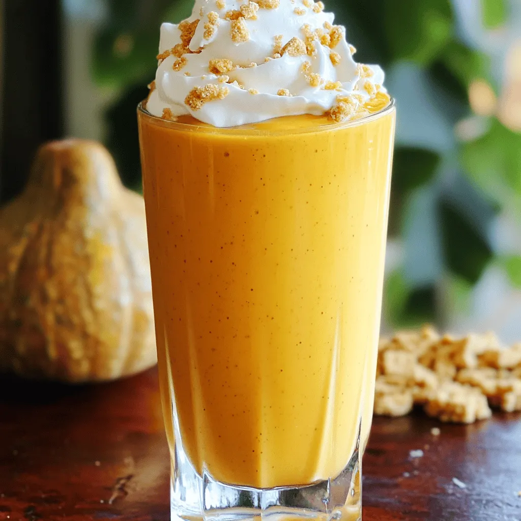 To make the pumpkin cheesecake protein smoothie, here are the key ingredients you'll need: - 1 cup unsweetened almond milk - 1/2 cup canned pumpkin puree - 1/4 cup creamy Greek yogurt - 1 scoop vanilla-flavored protein powder - 1 teaspoon pumpkin spice blend - 1 tablespoon honey or maple syrup (adjust to taste) - 1/2 teaspoon pure vanilla extract - Ice cubes (optional, for a thicker texture) - Whipped cream (optional, for topping) - Crushed graham crackers (optional, for garnish) Let’s talk about some options. If you want a dairy-free smoothie, you can swap the Greek yogurt with a plant-based yogurt. There are many great choices out there, like coconut or almond yogurt, that can work well. When it comes to sweeteners, you have some flexibility. Honey adds a nice floral taste, while maple syrup gives a deeper, richer flavor. You can use one or the other, or even a mix, to find your perfect sweetness level. Just remember to adjust the amount based on your taste! Enjoy making this rich and creamy smoothie! To make your Pumpkin Cheesecake Protein Smoothie, start by gathering all your ingredients. You will need almond milk, pumpkin puree, Greek yogurt, and vanilla protein powder. 1. Blend the Base: Add the almond milk, pumpkin puree, Greek yogurt, and protein powder to your blender. This mix forms the base of your smoothie. 2. Add Flavor: Now, sprinkle in the pumpkin spice, honey or maple syrup, and vanilla extract. This step adds sweetness and that classic cheesecake flavor. 3. Blend Well: Secure the blender lid and blend on high speed. Blend until the mix is smooth and creamy. Make sure all ingredients are well combined. 4. Adjust Thickness: If you want a thicker smoothie, toss in some ice cubes. Blend again until it reaches your desired thickness. 5. Taste and Adjust: After blending, taste your smoothie. If you want it sweeter, add a bit more honey or maple syrup. Blend again briefly to mix it in. 6. Pour and Serve: Carefully pour the smoothie into tall glasses. Fill them generously to enjoy every last drop. 7. Garnish: For a fun touch, add whipped cream on top. A sprinkle of crushed graham crackers gives it that cheesecake look. This smoothie is easy to make and perfect for any time of the day. Enjoy the rich and creamy flavor! You can easily change this smoothie to fit your taste. Here are some ideas: - Add more flavor: Try adding a pinch of nutmeg or a dash of cinnamon. These spices boost the pumpkin flavor and add warmth. - Switch protein sources: Use chocolate protein powder for a different taste. You can also use whey, casein, or plant-based protein. - Make it vegan-friendly: Replace the Greek yogurt with coconut yogurt. Use maple syrup instead of honey. This keeps it creamy and sweet without dairy. - Adjust serving sizes: If you want to make more servings, just double the recipe. You can blend larger batches for quick breakfasts or snacks. Want to make your smoothie even healthier? Here are some tips: - Add greens: Toss in a handful of spinach or kale. This adds vitamins without changing the flavor much. You won’t even taste it! - Alternative protein sources: If you prefer something different, try a plant-based protein powder. It’s perfect for those who avoid dairy. {{image_4}} You can switch up the spice blend in your Pumpkin Cheesecake Protein Smoothie. Instead of pumpkin spice, try adding nutmeg or ginger for a unique twist. These spices give warmth and depth to the flavor. You can also add a pinch of cinnamon for a cozy touch that pairs well with pumpkin. Each spice will bring a different taste, so feel free to mix and match until you find your favorite. To achieve a creamier texture, consider using frozen fruit. Frozen bananas or even some frozen pumpkin puree can enhance the smoothness. They blend easily and add a chill to your drink. If you like your smoothie thicker, adjust the ice content. Use a handful of ice cubes to create a thicker consistency. Blend until smooth, and remember to taste. You can always add more ice or liquid to get it just right. Store leftover pumpkin cheesecake protein smoothie in an airtight container. This keeps it fresh. Place it in the fridge. It will stay good for up to two days. You might see some separation. Just give it a good shake before enjoying it again. You can freeze portions of your smoothie. Pour it into ice cube trays or freezer-safe bags. Leave some space for expansion as it freezes. When you're ready to enjoy it, take out a portion. Thaw it in the fridge overnight or use the microwave on low. After thawing, blend it again for a creamy texture. Can I use fresh pumpkin instead of canned? Yes, you can use fresh pumpkin. Just cook and puree it first. Canned pumpkin is easier and saves time, but fresh gives a nice flavor. Choose what fits your style. What can I substitute for protein powder? You can try Greek yogurt or silken tofu. These options add protein and creaminess. If you want more flavor, use nut butter. It will change the taste a little. How can I make this smoothie keto-friendly? To make this smoothie keto-friendly, use unsweetened almond milk and skip the honey. You can add a low-carb sweetener, like stevia. This keeps the carbs low while still tasting great. This smoothie serves two and packs a punch. Each serving has about 200 calories and 20 grams of protein. It’s a great snack or breakfast choice. Health Benefits of Key Ingredients: - Pumpkin: Rich in vitamins A and C, it helps your immune system. It also has fiber, which is good for digestion. - Greek Yogurt: This yogurt adds protein and probiotics. Probiotics are good for gut health and help with digestion. This smoothie is not just tasty; it's packed with nutrients too! This post covered how to make a delicious, healthy smoothie. We looked at key ingredients like almond milk, pumpkin puree, and Greek yogurt. You learned tips for blending, customizing flavors, and enhancing nutrition. We also discussed storage techniques to keep your smoothies fresh. Remember, yo