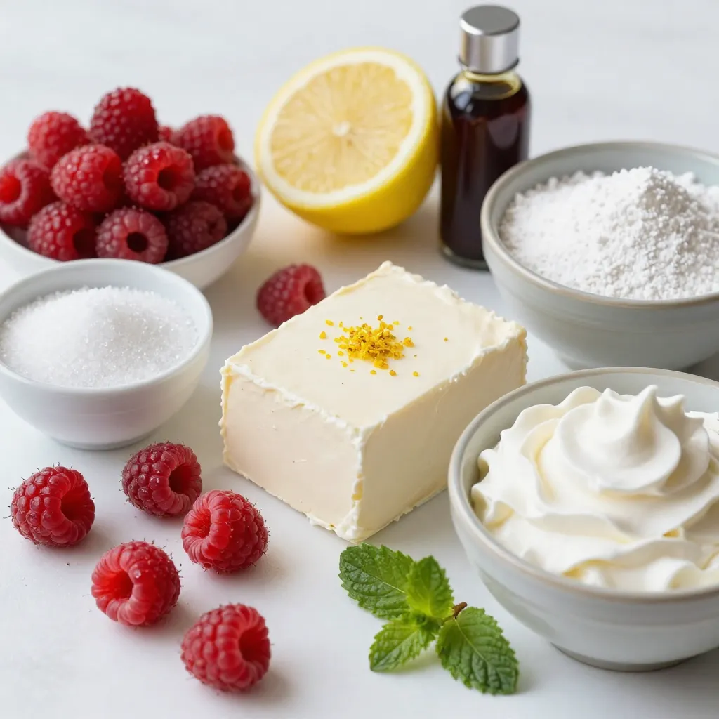 To create the perfect Raspberry Lemon Cheesecake Mousse, you need fresh ingredients. Start with 1 cup of fresh raspberries. They give a bright flavor and vibrant color. Use 2 tablespoons of granulated sugar to sweeten the raspberries. The sugar helps bring out their natural juices.
