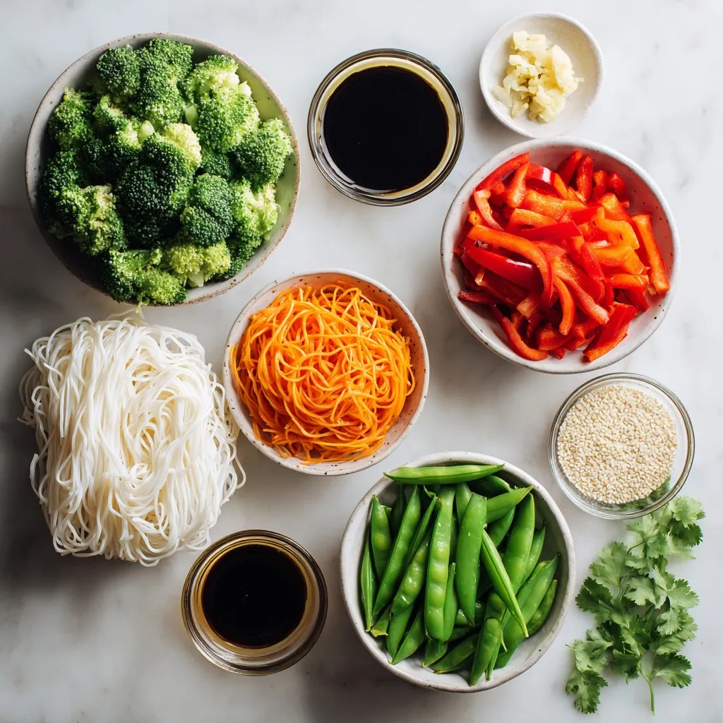 To make a great Sesame Ginger Noodle Bowl, you need fresh and vibrant ingredients. Start with noodles; whole wheat or rice noodles work best. Next, gather colorful veggies like red bell pepper, broccoli, carrot, and snap peas. These add crunch and nutrition. Aromatics like ginger, garlic, and green onions will give the bowl a flavor boost.
