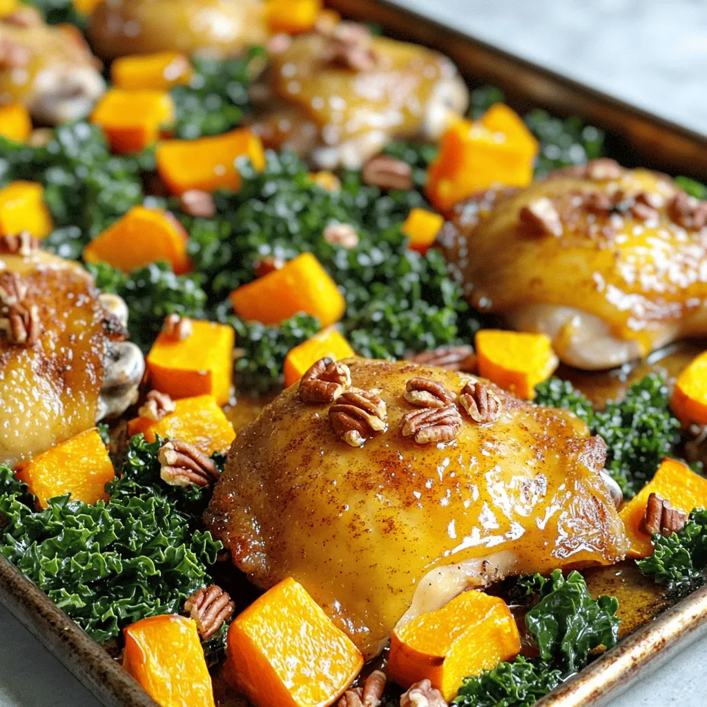 I use bone-in, skin-on chicken thighs for their rich flavor. You can swap them for chicken breasts if you prefer leaner meat. Butternut squash adds sweetness and texture. If you can’t find it, sweet potatoes work well too. For olive oil, you can use canola oil as a substitute. Maple syrup is key for sweetness, but honey can be a good alternative. Use ground cinnamon and nutmeg to enhance the dish.