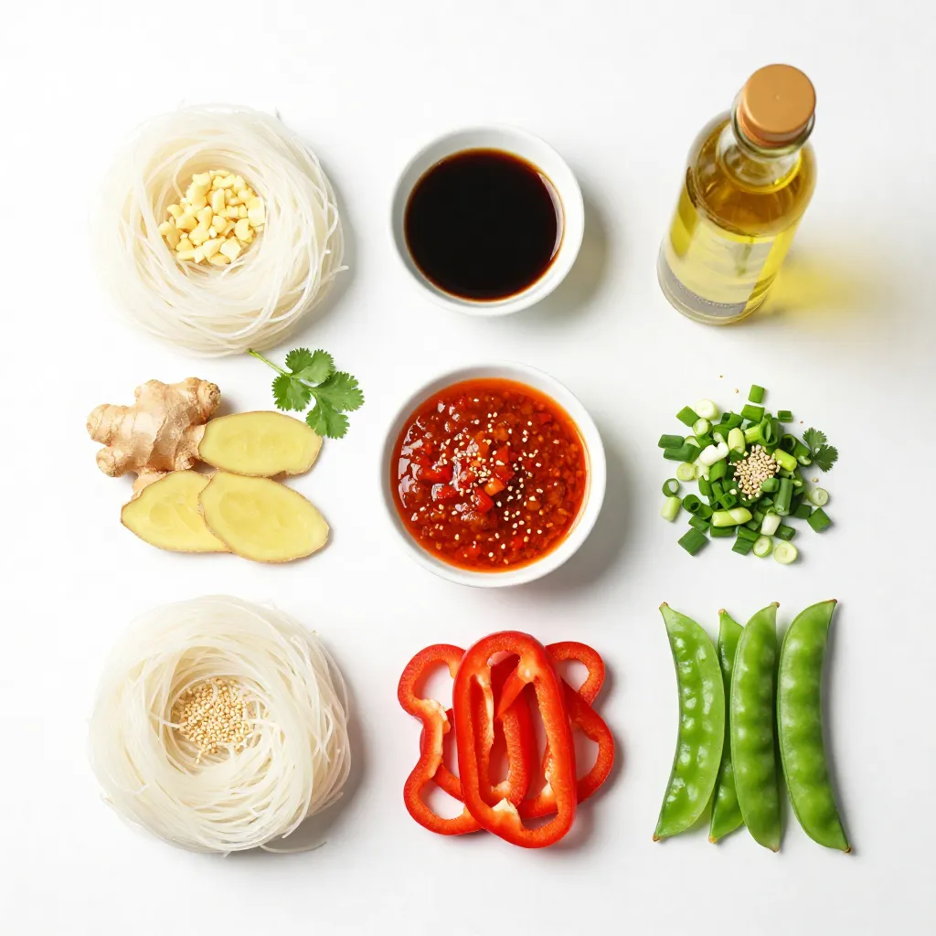Each ingredient adds its own flavor. The rice noodles are the base. They soak up the sauces well. Sweet chili sauce gives a nice sweet and spicy kick. Soy sauce adds depth to the dish. Sesame oil brings a warm, nutty taste. Minced garlic and fresh ginger create a rich aroma. The red bell pepper and snap peas add crunch and color. Green onion and sesame seeds finish off the dish with extra flair. Fresh cilantro gives a pop of brightness. Salt and pepper enhance all these flavors.