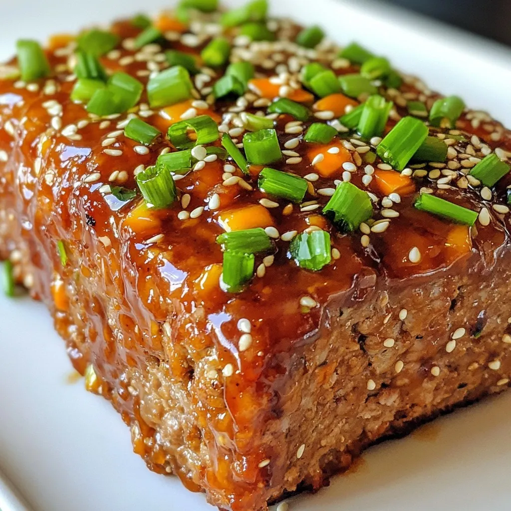 To make your meatloaf look special, use sesame seeds and chopped green onions. They add flavor and color. You can also drizzle more teriyaki sauce on top. If you want, serve it with steamed rice and fresh veggies. This makes a fun and complete meal!